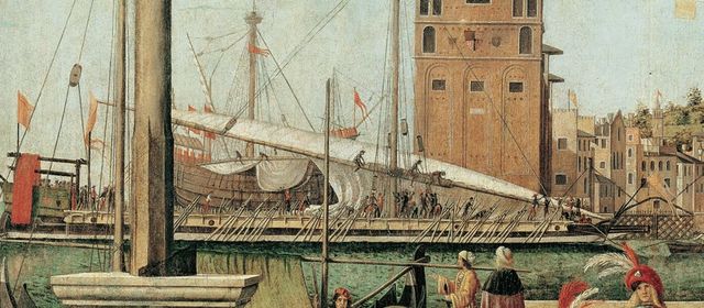 尽管地中海南岸的狭长地带都缺乏合适的木材,但埃及的亚历山大港、达米埃塔、替尼斯(Tinnis)和福斯塔特建立了军械库,使用的木材来自叙利亚北部和马格里布,或者是在对安纳托利亚的侵袭中掠夺来的木材。同样,西班牙的在塞维利亚、德尼亚(Denia)、巴伦西亚,特别是阿尔梅里亚也都有武库。与此同时,在西班牙东北部和意大利的基督教港口,渔船逐渐改建为适合公海航行的商船。巴塞罗那、热那亚和威尼斯在内陆森林茂密的山区附近,很容易就找到了扩大海军建设所需的资源。早在1104年,威尼斯就建立了军械厂,最终成为中世纪西方最大的工厂。