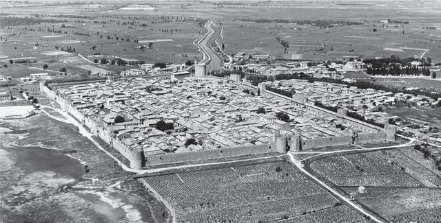 这座筑有城墙的城市是艾格莫特,是由路易九世建立的,因此法兰西应该在地中海上有一个出海口,而许多十字军正是在这里扬帆东渡。后来其海岸的淤塞使之再也不能发挥其港口功能,至今无多大改变。
