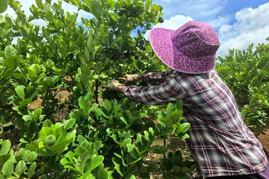 在南宁市江南区吴圩镇吴圩社区六么坡山顶,成片的柠檬树郁郁葱葱,清新的柠檬香气扑鼻而来,令人心旷神怡。