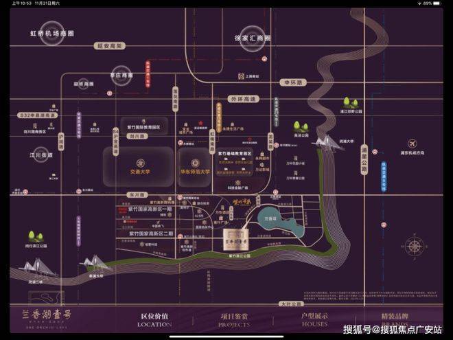 而整个兰香湖社区位于上海2035规划的主城区里,距市中心大约20km,距15号线号线多分钟就可以到达徐家汇。而紫竹高新区站则可以实现与15号线的无缝换乘,“双轨交”配置让紫竹对外交通更为便捷。