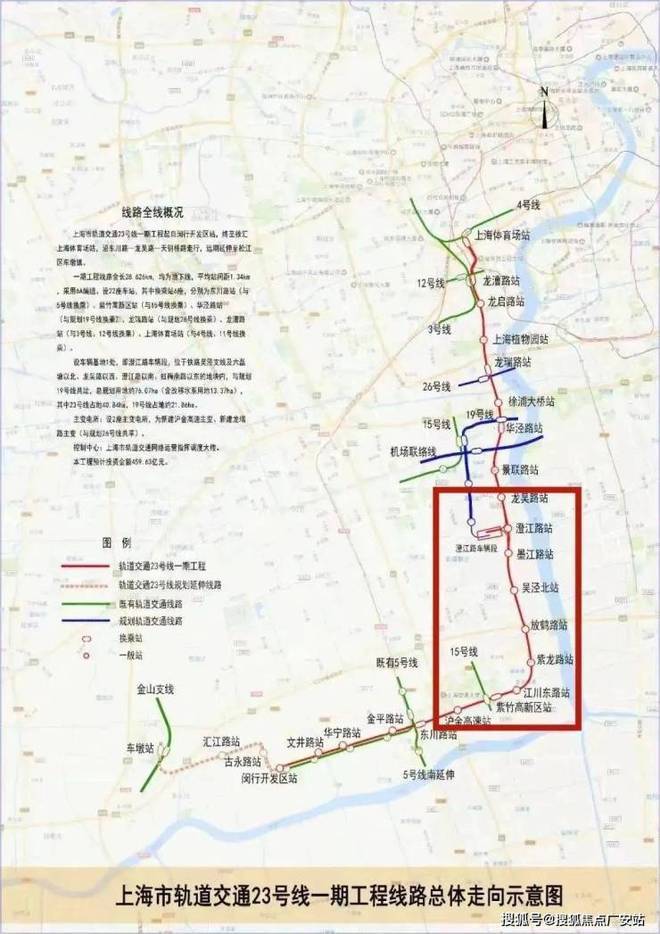 作为上海西南重要的交通主干道,23号线起于闵行开发区站,终于徐汇上海体育场站,一期线等多条轨交换乘,预计将于2027年底试运营通车。